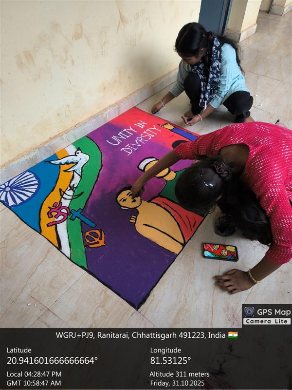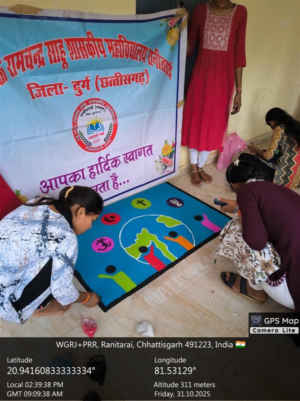 राष्ट्रीय सेवा योजना के अंतर्गत राष्ट्रीय एकता दिवस पर रंगोली प्रतियोगिता एवं शपथ ग्रहण कार्यक्रम